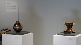 The Metals department has an amazing display of work up right now in the NBCCD Gallery. As before with the pottery show, "It All Begins with Clay", I helped set up the lighting. This show, "The Melting Point", was developed and conceived by the department head, Brigitte Clavette. It's really an incredible display! Below are the photos of the show, but really you have to see it to really get the full impact, so please, come visit the Gallery today!